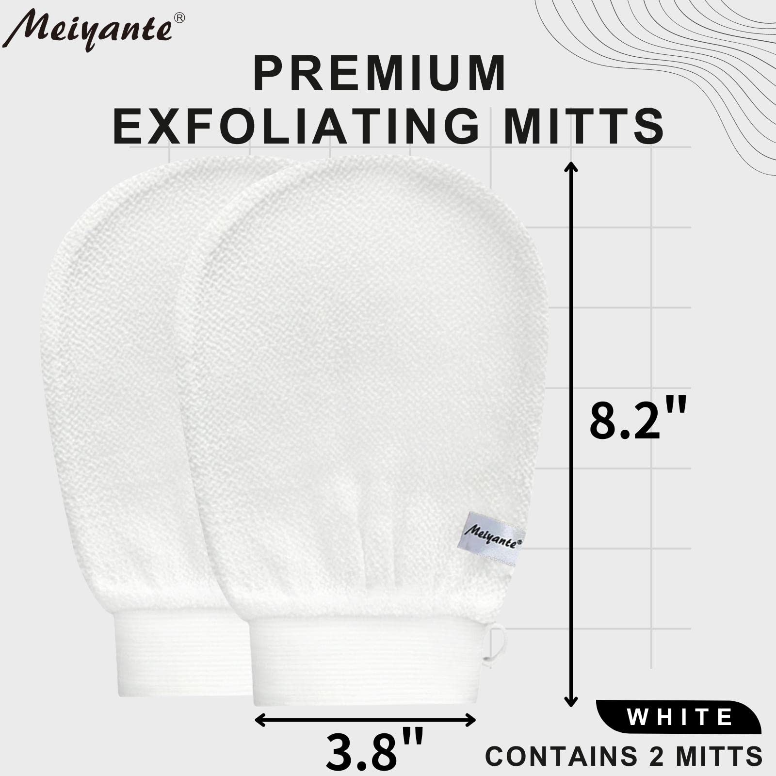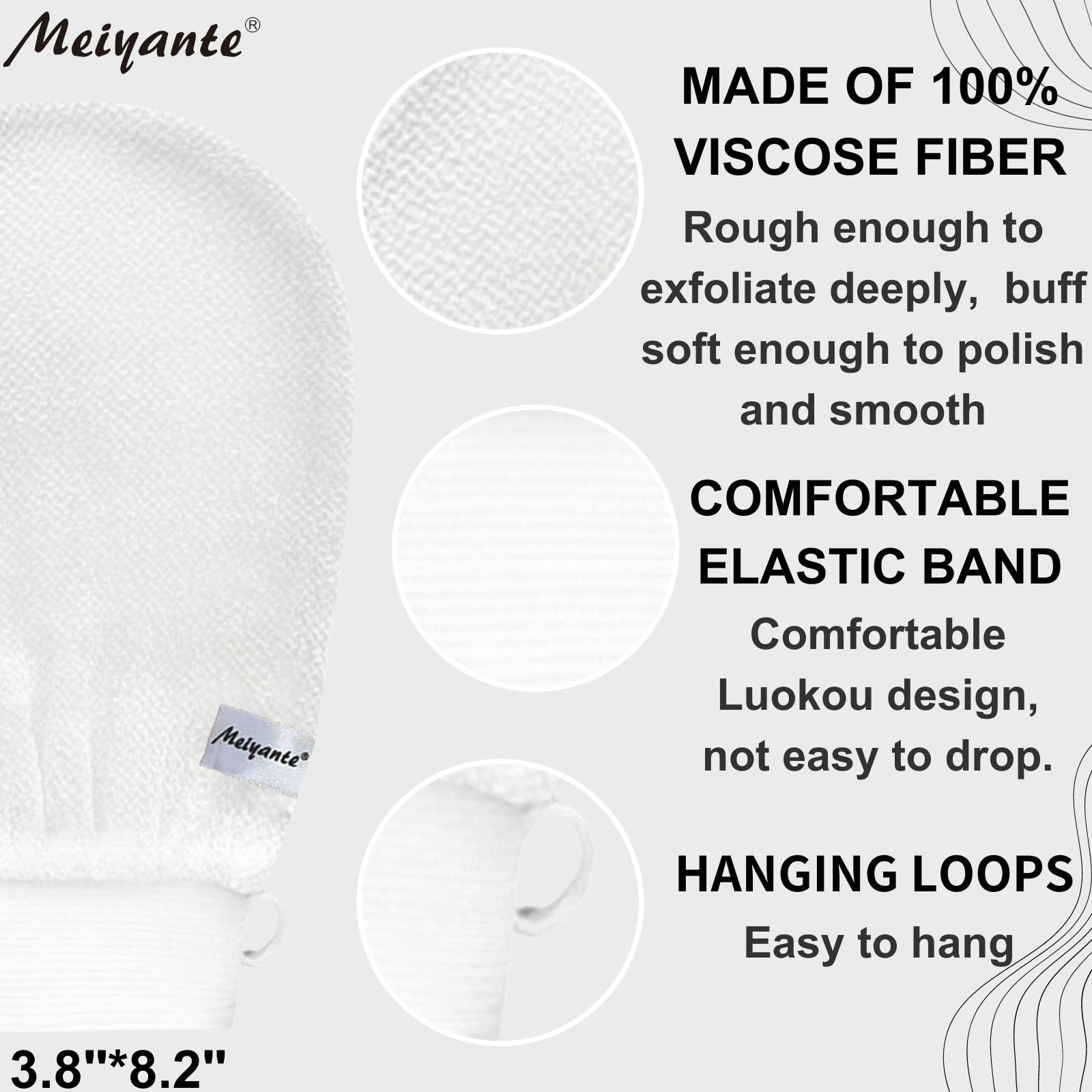 Meiyante Korean Exfoliating Mitts (2pcs White L) Microdermabrasion at Home Exfoliating Gloves Visibly Lift Away Dead Skin, Great for Spray Tan Removal or Keratosis Pilaris Made of 100% Viscose Fiber