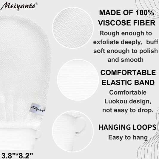 Meiyante Korean Exfoliating Mitts (2pcs White L) Microdermabrasion at Home Exfoliating Gloves Visibly Lift Away Dead Skin, Great for Spray Tan Removal or Keratosis Pilaris Made of 100% Viscose Fiber